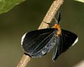 White-tipped Black (Melanchroia chephise) a diurnal moth. South Austin, Texas, November 9, 2006
